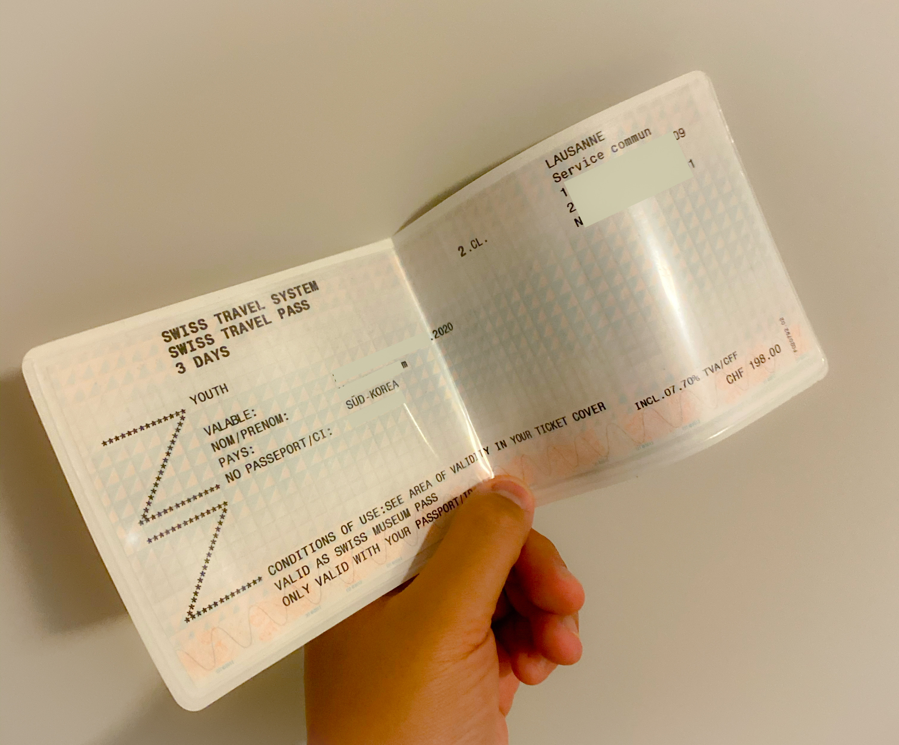 계속 도시를 넘나들거라 3일 연속권 2등석을 유스 할인으로 CHF 198에 구매했다.